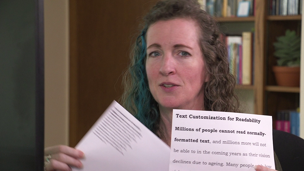 Généralement, tout le texte présent dans la vidéo devrait être inclus dans l’audio principal (description intégrée) ou dans la description à part. Par exemple, le texte du titre au début de la vidéo, les liens et les adresses électroniques affichés à la fin, les textes avec les noms des locuteurs, et le texte présent dans la présentation. Le texte n’a pas besoin d’être inclus sous forme de verbatims (exactement mot pour mot), mais toute l’information transmise par le texte doit être disponible dans l’audio principal, dans la description à part, ou clairement mise à disposition avec la vidéo.